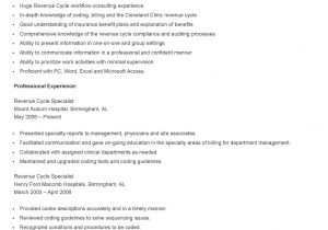 Back To Healthcare Revenue Cycle Management Resume Samples