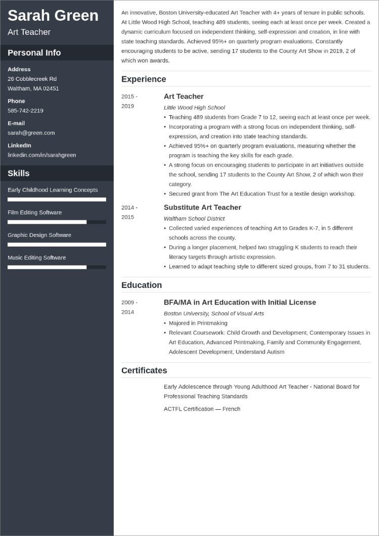Art Teacher Resume Examples, Templates & Tips for 2022