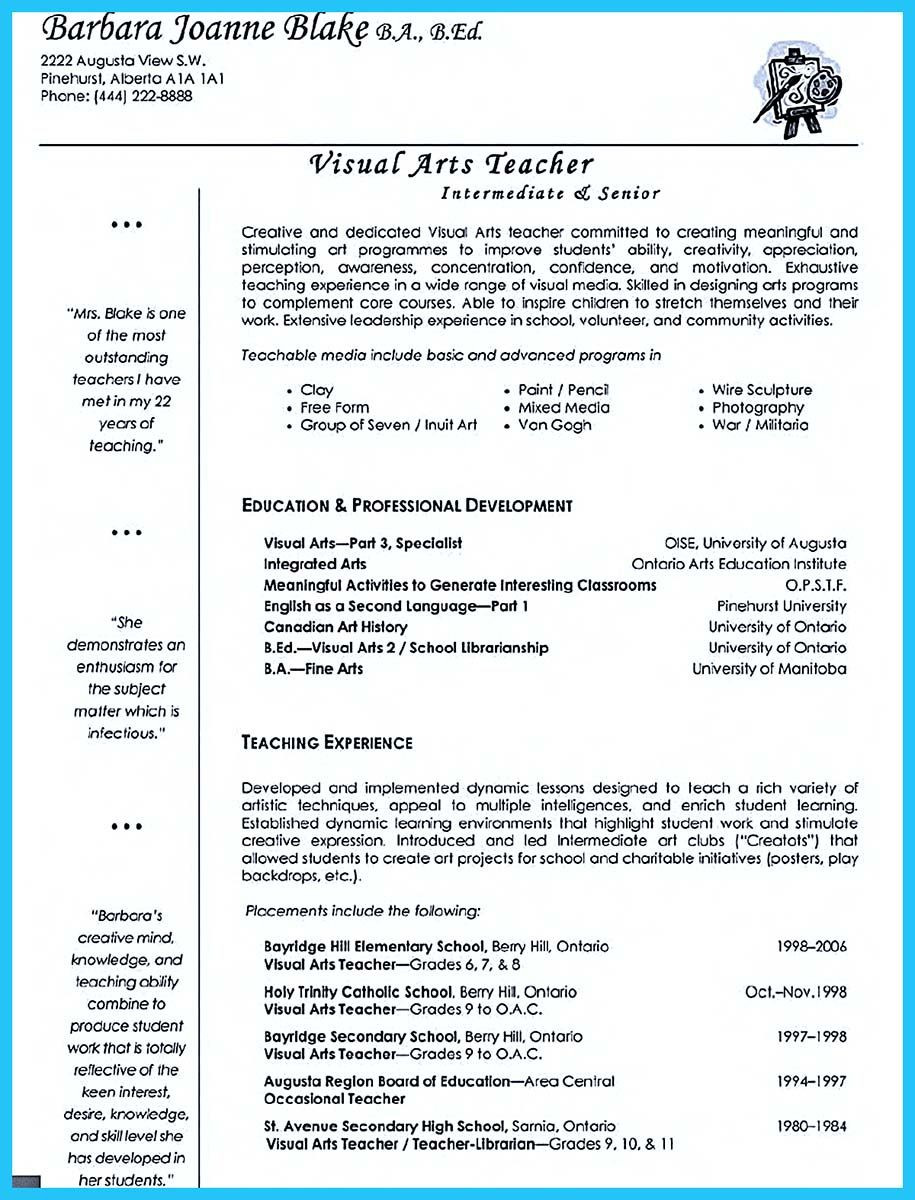 Employers use resumes as the first step in identifying and selecting realistic candidates for jobs and it is important that your resume properly presents your accomplishment experience and scholarly qualifications. A well-written resume presents an impressive image of you to employers. Employers see at hundreds of resumes for the same job and stop happening choosing just one. It is important that your resume is properly formatted and provides all relevant opinion not quite you. Looking at professionally written high school art teacher resume sample can assist you make your own fabulous resume and manage to pay for all the opinion employers need.