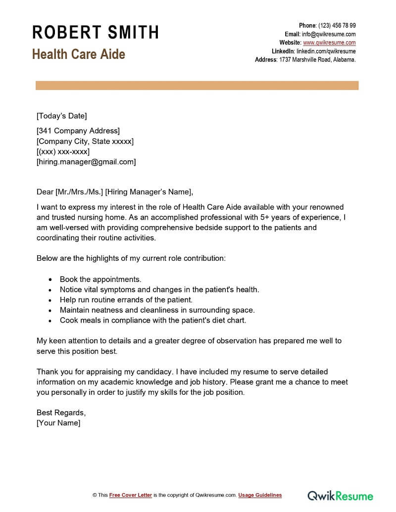 Home Health Aide Resume or Cover Letter Samples Health Care Aide Cover Letter Examples – Qwikresume and all other pictures, designs or photos on our website are copyright of their respective owners. we get our pictures from another websites, search engines and other sources to use as an inspiration for you. please contact us if you think we are infringing copyright of your pictures using contact page. we will be very happy to help you.