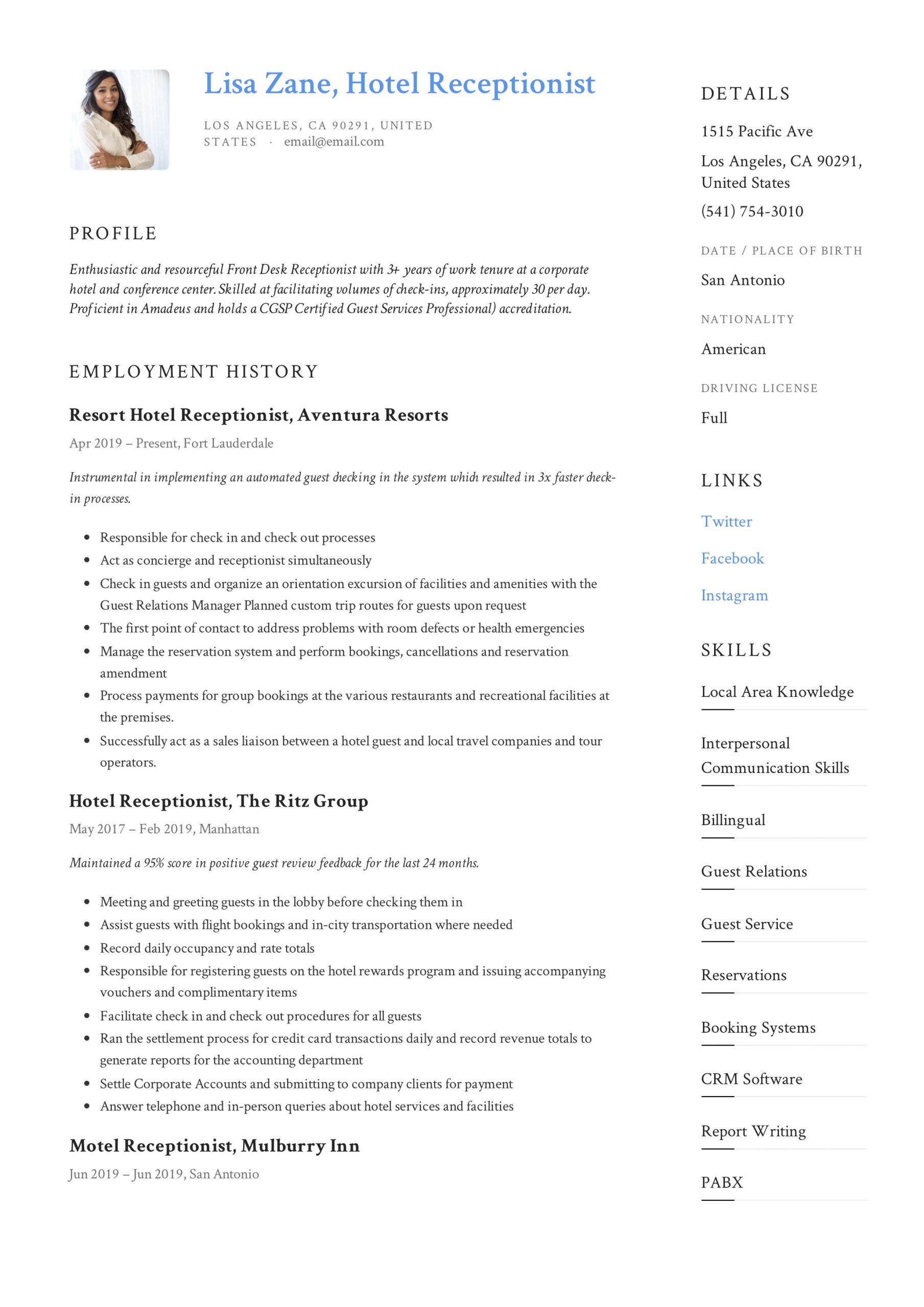 Hotel Front Desk Receptionist Resume Sample Hotel Receptionist Resume & Writing Guide and all other pictures, designs or photos on our website are copyright of their respective owners. we get our pictures from another websites, search engines and other sources to use as an inspiration for you. please contact us if you think we are infringing copyright of your pictures using contact page. we will be very happy to help you.