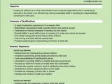 Resume Example for Childcare / Social Services Worker