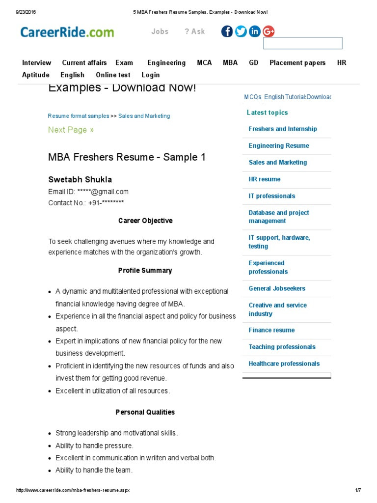 Latest Resume Samples for Mba Freshers 5 Mba Freshers Resume Samples, Examples – Download now! Pdf Pdf … and all other pictures, designs or photos on our website are copyright of their respective owners. we get our pictures from another websites, search engines and other sources to use as an inspiration for you. please contact us if you think we are infringing copyright of your pictures using contact page. we will be very happy to help you.