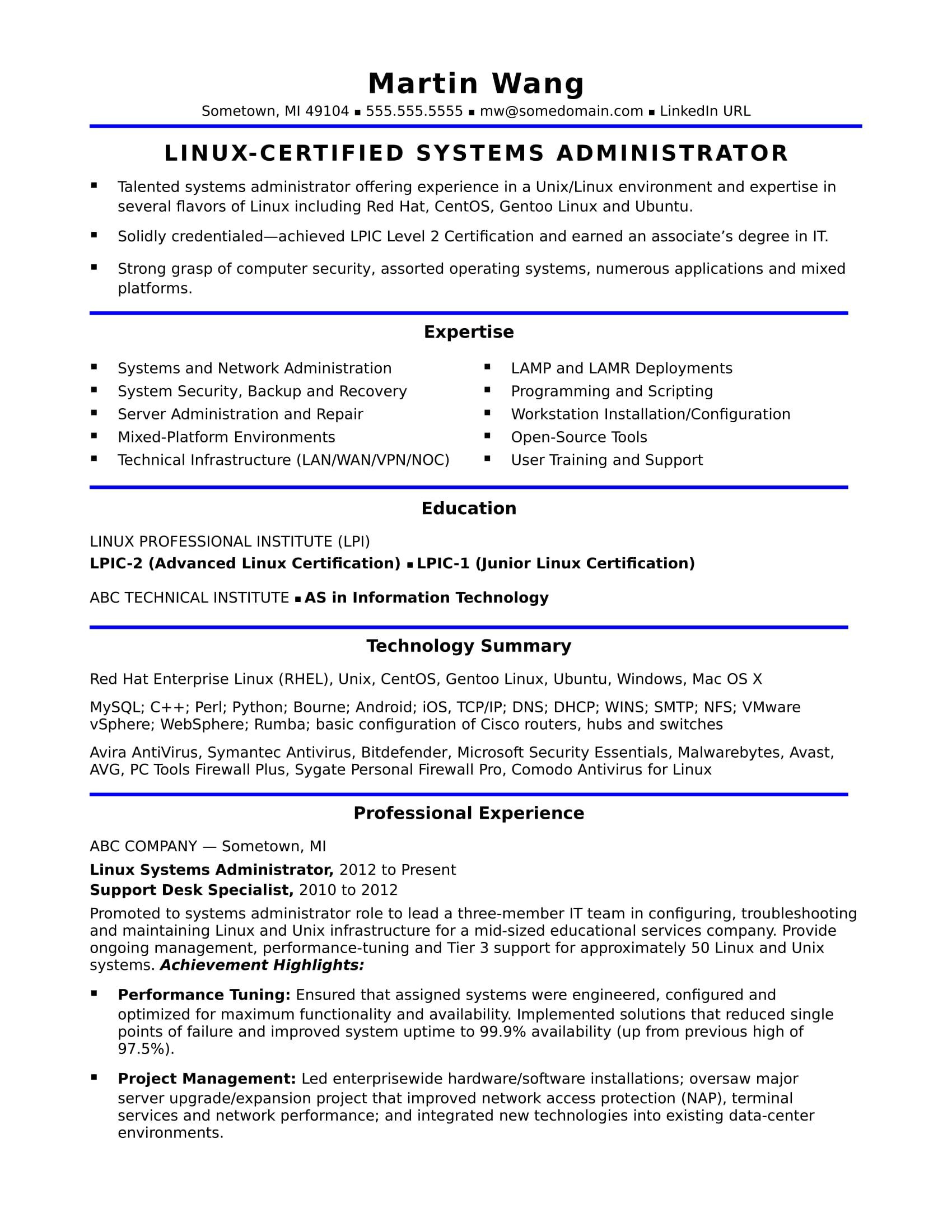 Linux Admin Resume Sample for Freshers See This Sample Resume for A Midlevel Systems Adminstrator for … and all other pictures, designs or photos on our website are copyright of their respective owners. we get our pictures from another websites, search engines and other sources to use as an inspiration for you. please contact us if you think we are infringing copyright of your pictures using contact page. we will be very happy to help you.