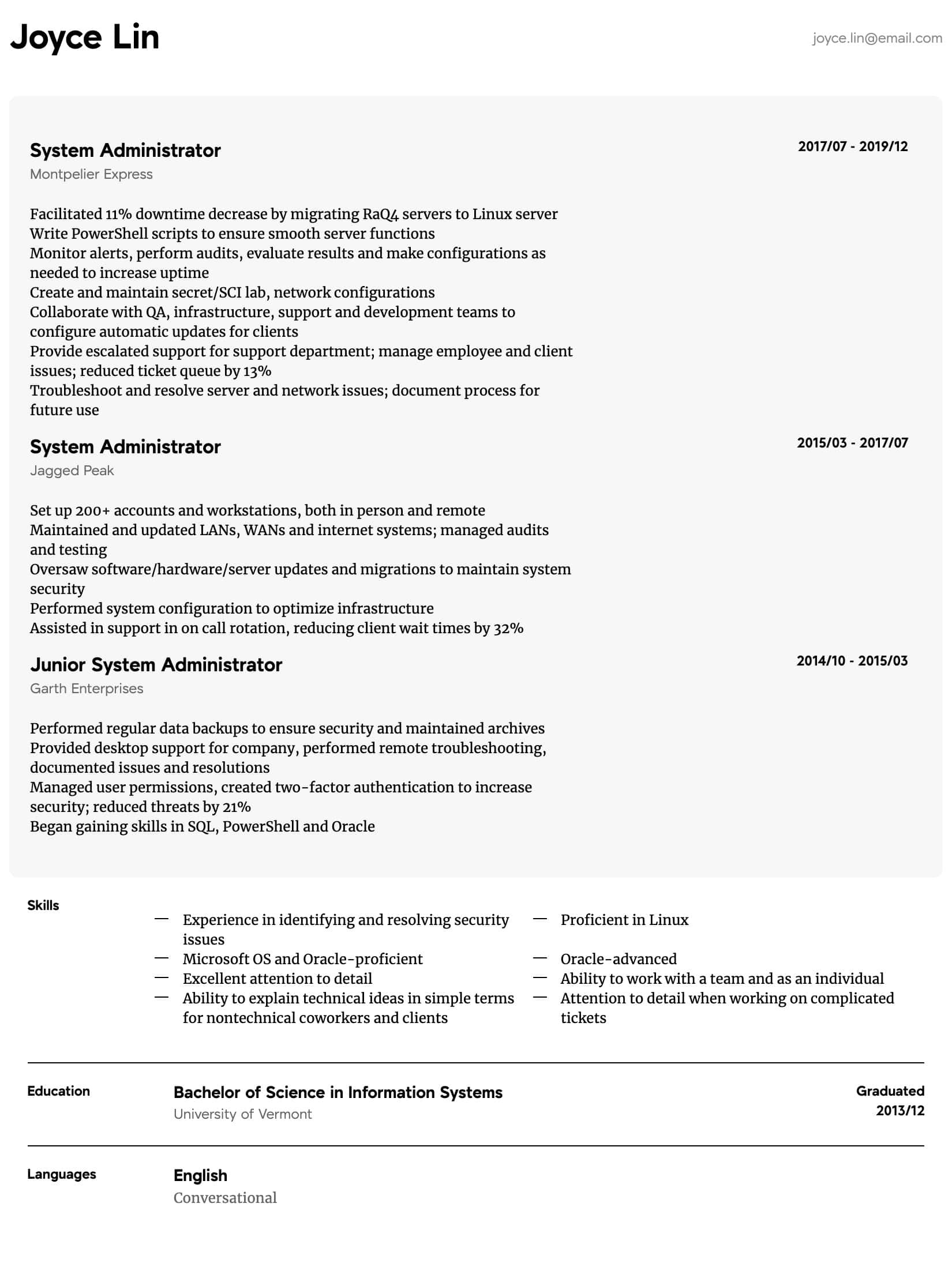 Linux Administrator Resume Sample for Experience System Administrator Resume Samples All Experience Levels … and all other pictures, designs or photos on our website are copyright of their respective owners. we get our pictures from another websites, search engines and other sources to use as an inspiration for you. please contact us if you think we are infringing copyright of your pictures using contact page. we will be very happy to help you.