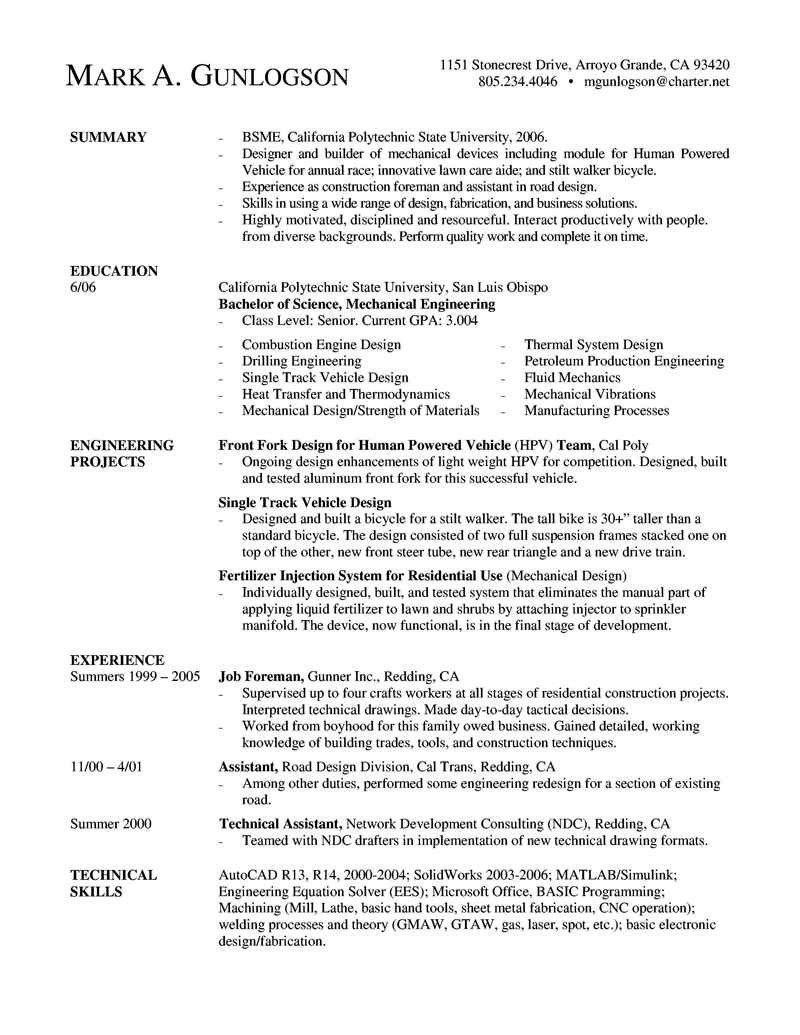 Back To Mechanical Design Engineer Resume Sample Pdf