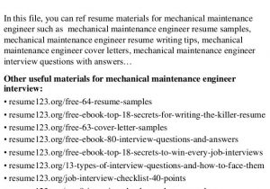 Back To Mechanical Maintenance Engineer Resume Sample Pdf