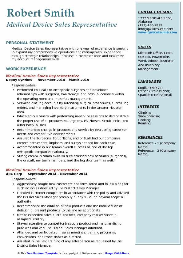 Medical Device Sales Representative Resume Sample Medical Device Sales Representative Resume Samples and all other pictures, designs or photos on our website are copyright of their respective owners. we get our pictures from another websites, search engines and other sources to use as an inspiration for you. please contact us if you think we are infringing copyright of your pictures using contact page. we will be very happy to help you.