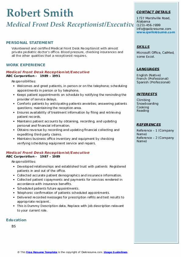 Medical Front Office Manager Resume Samples Medical Front Desk Receptionist Resume Samples and all other pictures, designs or photos on our website are copyright of their respective owners. we get our pictures from another websites, search engines and other sources to use as an inspiration for you. please contact us if you think we are infringing copyright of your pictures using contact page. we will be very happy to help you.