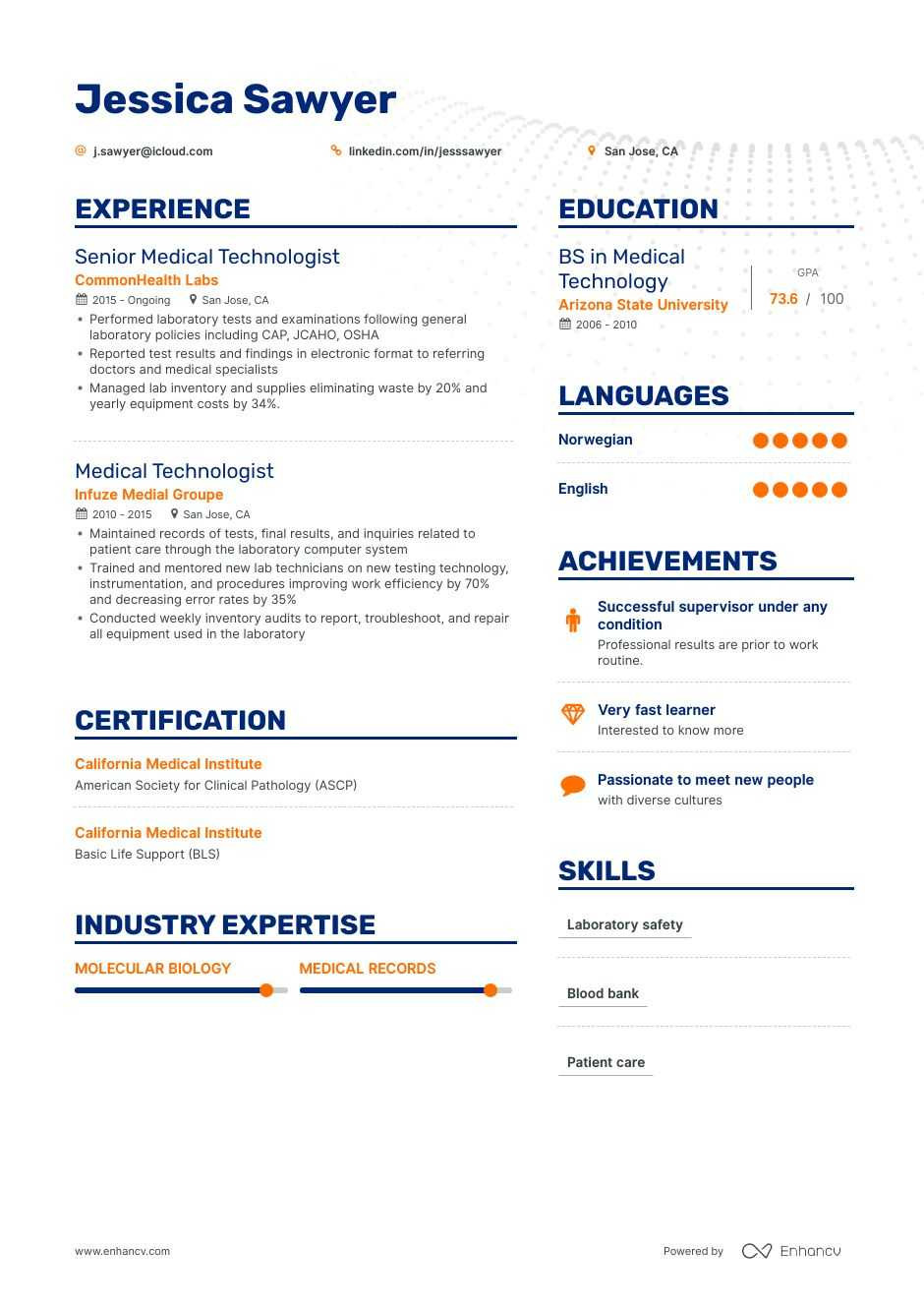 Medical Technologist Resume and Cover Letter Templates Medical Technologist Resume Guide Examples and all other pictures, designs or photos on our website are copyright of their respective owners. we get our pictures from another websites, search engines and other sources to use as an inspiration for you. please contact us if you think we are infringing copyright of your pictures using contact page. we will be very happy to help you.