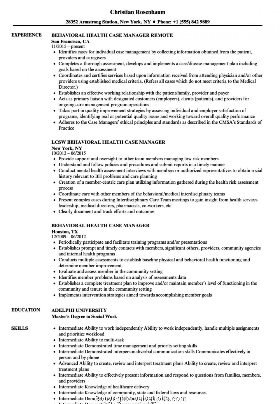Mental Health Case Manager Resume Sample Make Case Manager Mental Health Resume Behavioral Health and all other pictures, designs or photos on our website are copyright of their respective owners. we get our pictures from another websites, search engines and other sources to use as an inspiration for you. please contact us if you think we are infringing copyright of your pictures using contact page. we will be very happy to help you.
