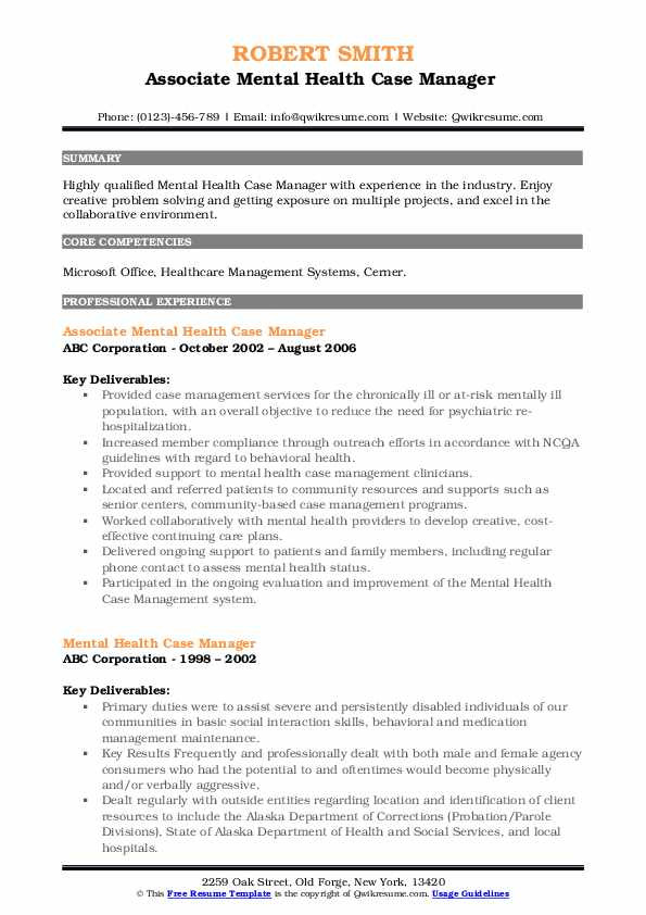 Mental Health Case Manager Resume Sample Mental Health Case Manager Resume Samples and all other pictures, designs or photos on our website are copyright of their respective owners. we get our pictures from another websites, search engines and other sources to use as an inspiration for you. please contact us if you think we are infringing copyright of your pictures using contact page. we will be very happy to help you.