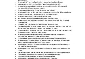 Back To Microsoft Azure Sample Resumes for 0 2 Years Experience