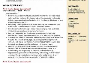 New Home Sales Consultant Resume Sample New Home Sales Consultant Resume Samples and all other pictures, designs or photos on our website are copyright of their respective owners. we get our pictures from another websites, search engines and other sources to use as an inspiration for you. please contact us if you think we are infringing copyright of your pictures using contact page. we will be very happy to help you.