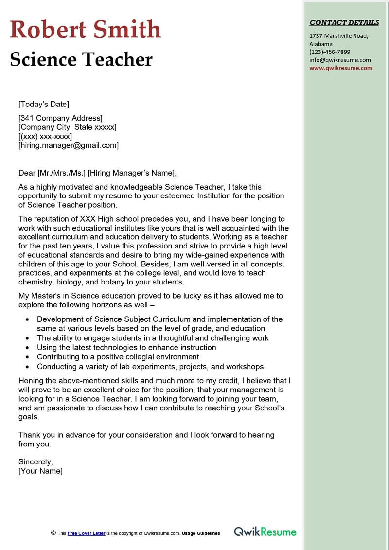 New Teacher Resume Cover Letter Sample Science Teacher Cover Letter Examples – Qwikresume and all other pictures, designs or photos on our website are copyright of their respective owners. we get our pictures from another websites, search engines and other sources to use as an inspiration for you. please contact us if you think we are infringing copyright of your pictures using contact page. we will be very happy to help you.