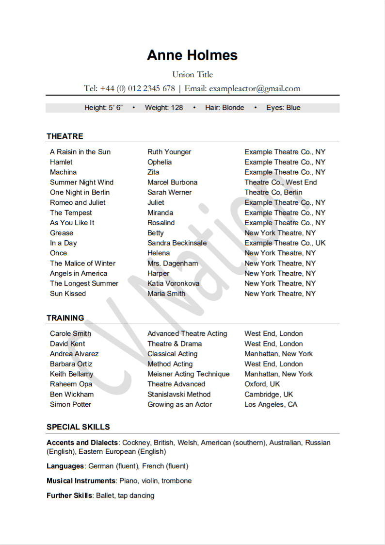 New York City Actor Resume Sample 5 Acting Resume Examples (lancarrezekiq Resume Writing Guide) â Cv Nation and all other pictures, designs or photos on our website are copyright of their respective owners. we get our pictures from another websites, search engines and other sources to use as an inspiration for you. please contact us if you think we are infringing copyright of your pictures using contact page. we will be very happy to help you.