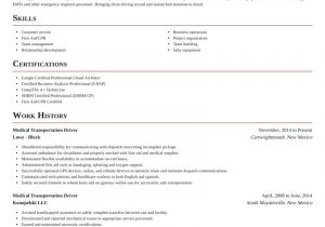 Back To Non Emergency Medical Transportation Driver Resume Sample
