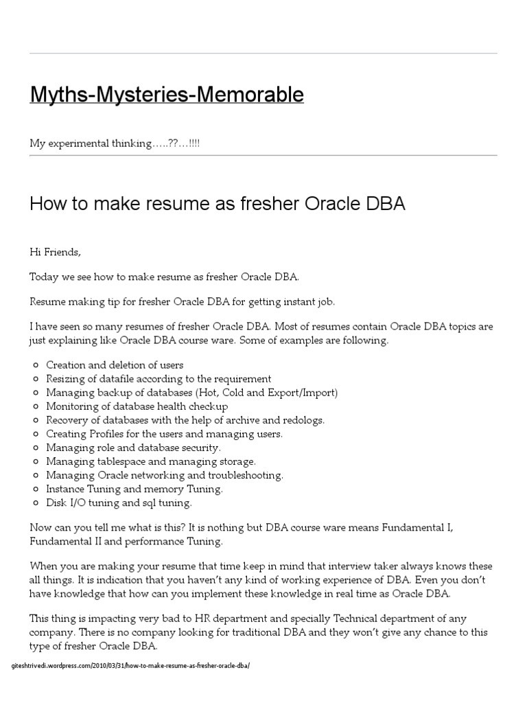 Oracle Dba Resume Sample for Fresher How to Make Resume as Fresher oracle Dba Myths-mysteries-memorable … is related to Resume Samples. if you looking for Oracle Dba Resume Sample for Fresher How to Make Resume as Fresher oracle Dba Myths-mysteries-memorable … and you feel this is useful, you must share this image to your friends. we also hope this image of Oracle Dba Resume Sample for Fresher How to Make Resume as Fresher oracle Dba Myths-mysteries-memorable … can be useful for you. we will always give new source of image for you