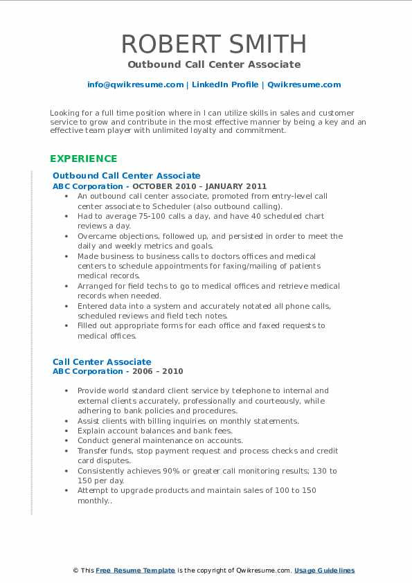 Outbound Call Center Agent Resume Sample Call Center associate Resume Samples and all other pictures, designs or photos on our website are copyright of their respective owners. we get our pictures from another websites, search engines and other sources to use as an inspiration for you. please contact us if you think we are infringing copyright of your pictures using contact page. we will be very happy to help you.