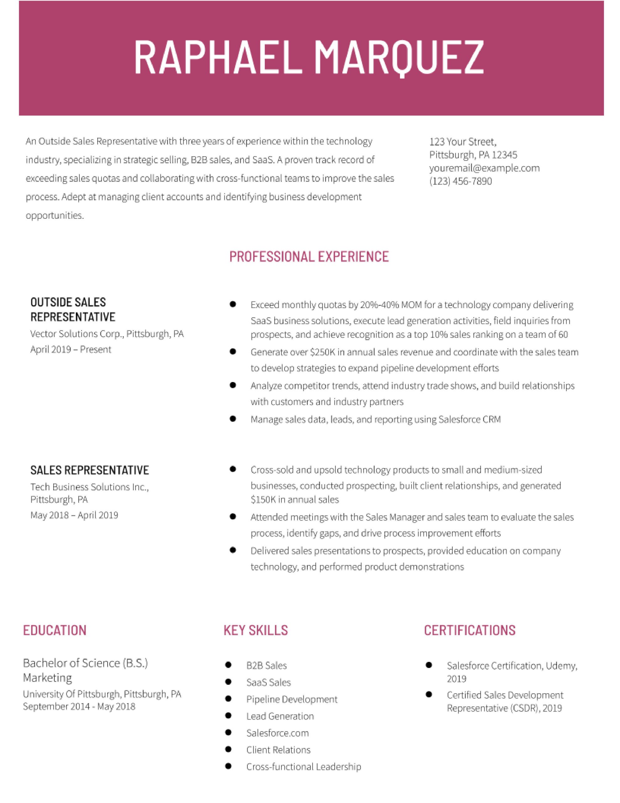 Outside Sales Representative Free Industry Specific Sample Resume Sales Representative Resume Examples In 2022 – Resumebuilder.com