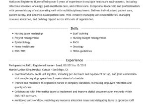 Pacu Nurse Career Profile Sample Resume Nursing Resume: Guide with Examples & Templates and all other pictures, designs or photos on our website are copyright of their respective owners. we get our pictures from another websites, search engines and other sources to use as an inspiration for you. please contact us if you think we are infringing copyright of your pictures using contact page. we will be very happy to help you.