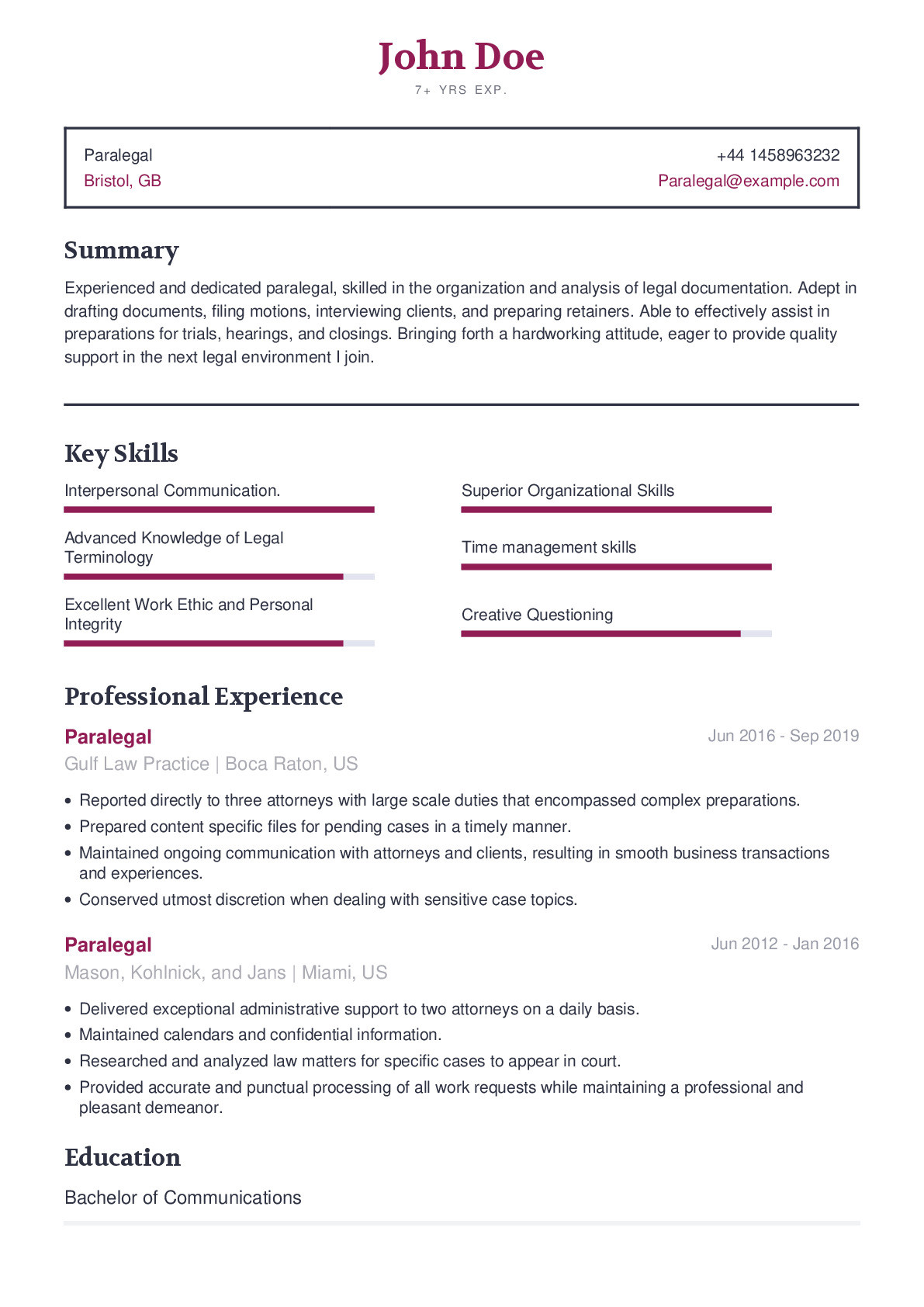 Paralegal Resume Sample Will B Paralegal Paralegal Resume Example with Content Sample Craftmycv and all other pictures, designs or photos on our website are copyright of their respective owners. we get our pictures from another websites, search engines and other sources to use as an inspiration for you. please contact us if you think we are infringing copyright of your pictures using contact page. we will be very happy to help you.