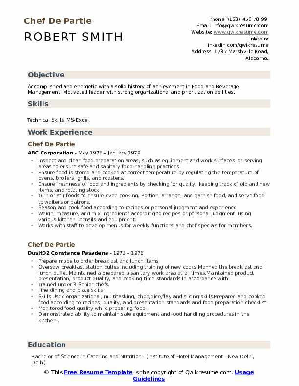 Pastry Chef De Partie Resume Sample Chef De Partie Resume Samples and all other pictures, designs or photos on our website are copyright of their respective owners. we get our pictures from another websites, search engines and other sources to use as an inspiration for you. please contact us if you think we are infringing copyright of your pictures using contact page. we will be very happy to help you.