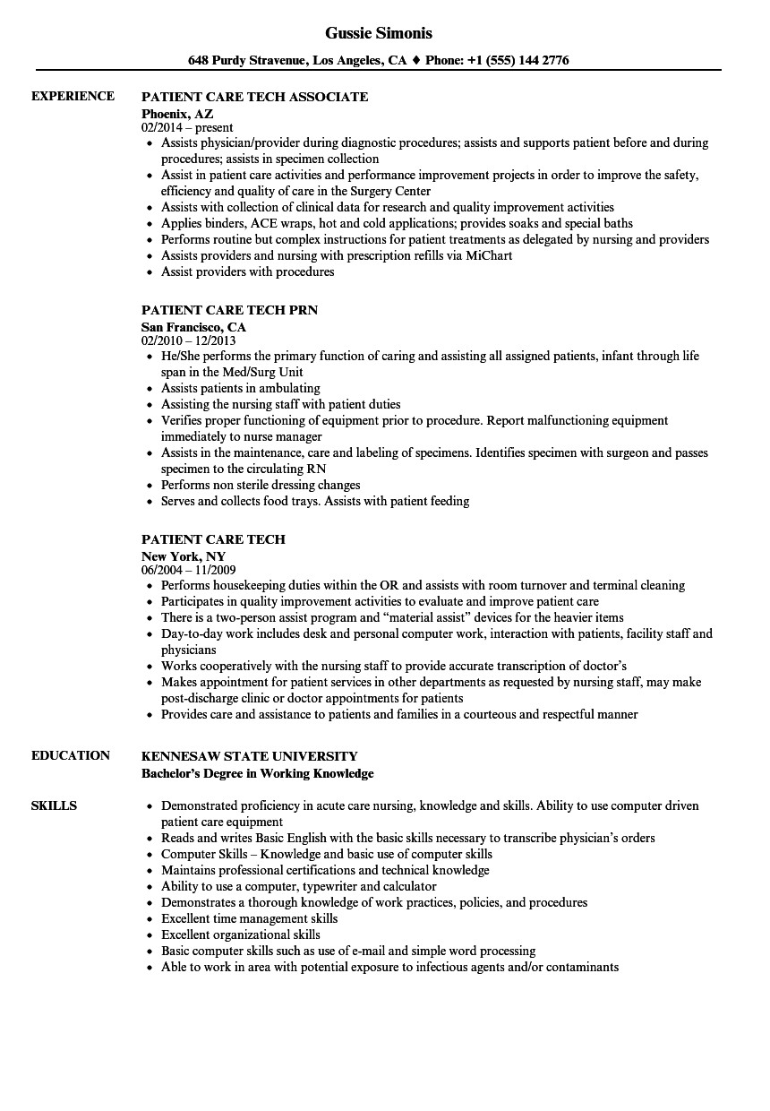 6 photos of the Patient Care Technician Resume Objective Sample