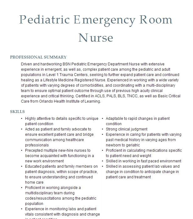 Pediatric Emergency Room Nurse Resume Sample Registered Nurse Pediatric Emergency Department Resume and all other pictures, designs or photos on our website are copyright of their respective owners. we get our pictures from another websites, search engines and other sources to use as an inspiration for you. please contact us if you think we are infringing copyright of your pictures using contact page. we will be very happy to help you.