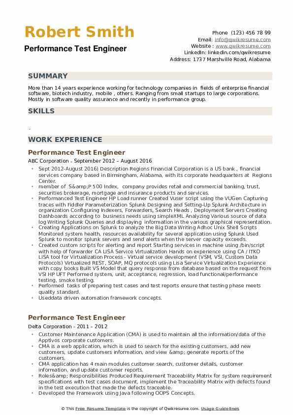 Performance Testing Using Jmeter Resume Sample Performance Test Engineer Resume Samples and all other pictures, designs or photos on our website are copyright of their respective owners. we get our pictures from another websites, search engines and other sources to use as an inspiration for you. please contact us if you think we are infringing copyright of your pictures using contact page. we will be very happy to help you.