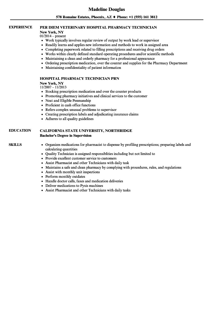Pharmacy Technician Resume Sample for Hospital Hospital Pharmacy Technician Resume Samples and all other pictures, designs or photos on our website are copyright of their respective owners. we get our pictures from another websites, search engines and other sources to use as an inspiration for you. please contact us if you think we are infringing copyright of your pictures using contact page. we will be very happy to help you.