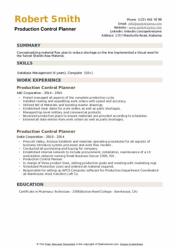 Production Planning and Control Resume Sample Production Control Planner Resume Samples and all other pictures, designs or photos on our website are copyright of their respective owners. we get our pictures from another websites, search engines and other sources to use as an inspiration for you. please contact us if you think we are infringing copyright of your pictures using contact page. we will be very happy to help you.