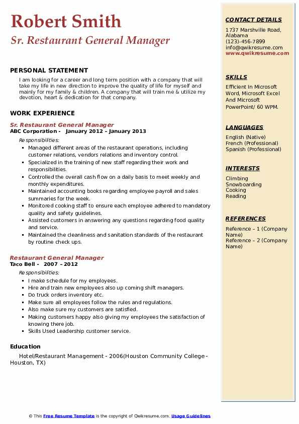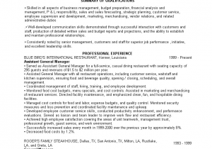 Back To Restaurant General Manager Resume Sample Pdf