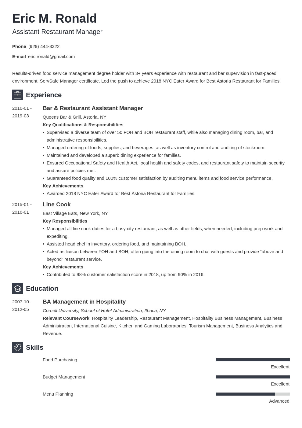 6 photos of the Restaurant Manager Job Description Resume Sample