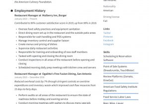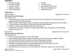 Back To Restaurant Manager Job Description Resume Sample