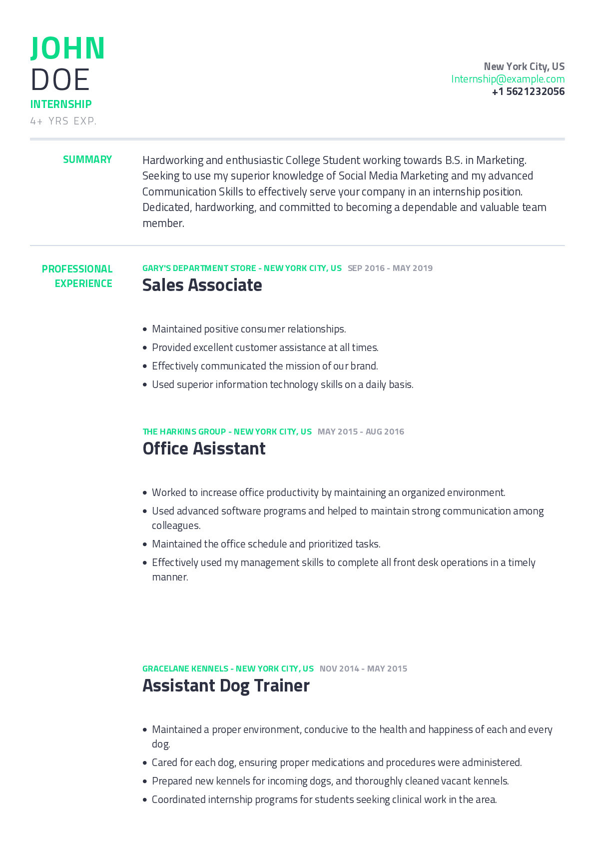 Resume for College Student Seeking Internship Sample Internship Resume Example with Content Sample Craftmycv and all other pictures, designs or photos on our website are copyright of their respective owners. we get our pictures from another websites, search engines and other sources to use as an inspiration for you. please contact us if you think we are infringing copyright of your pictures using contact page. we will be very happy to help you.