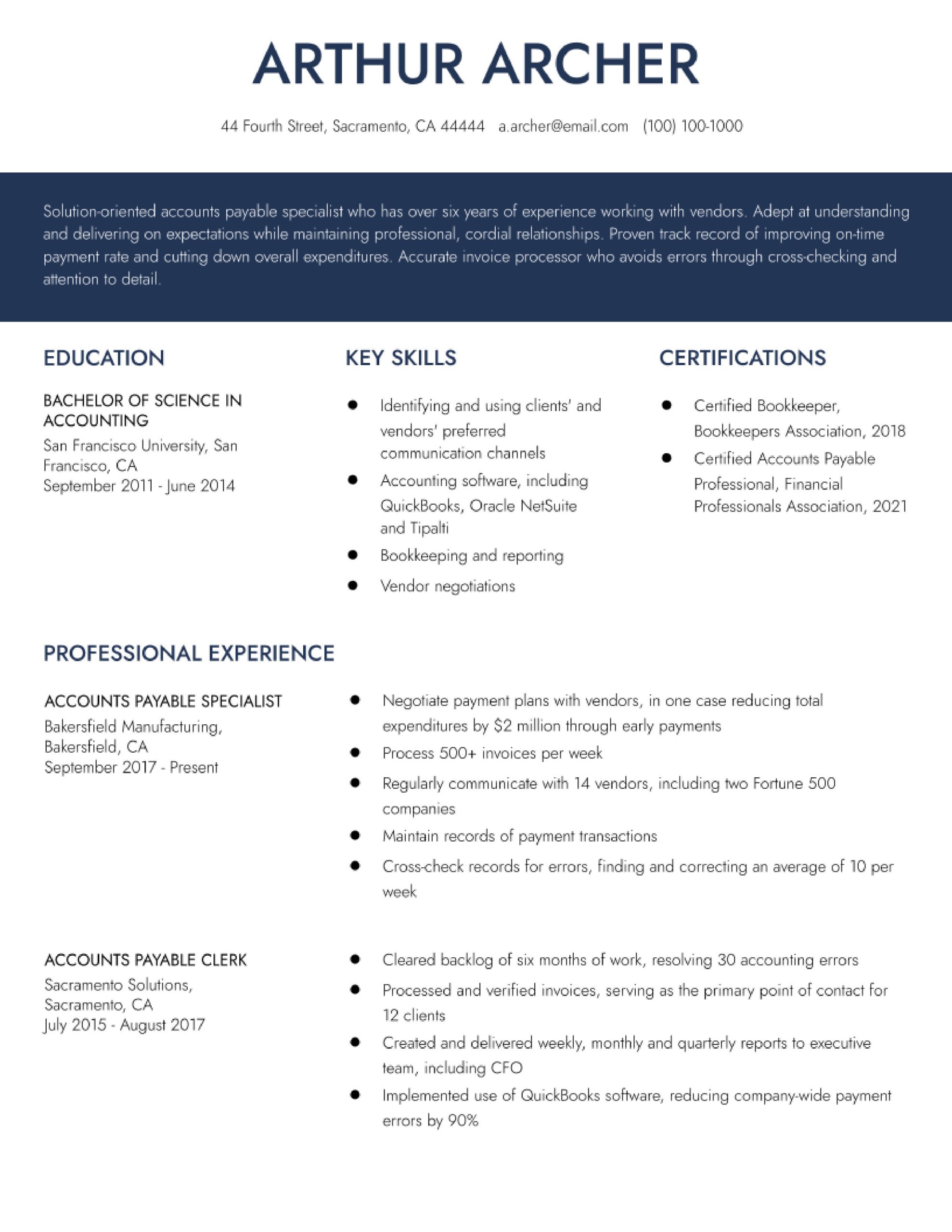 6 photos of the Resume Sample for A P Clerk Manufacturing