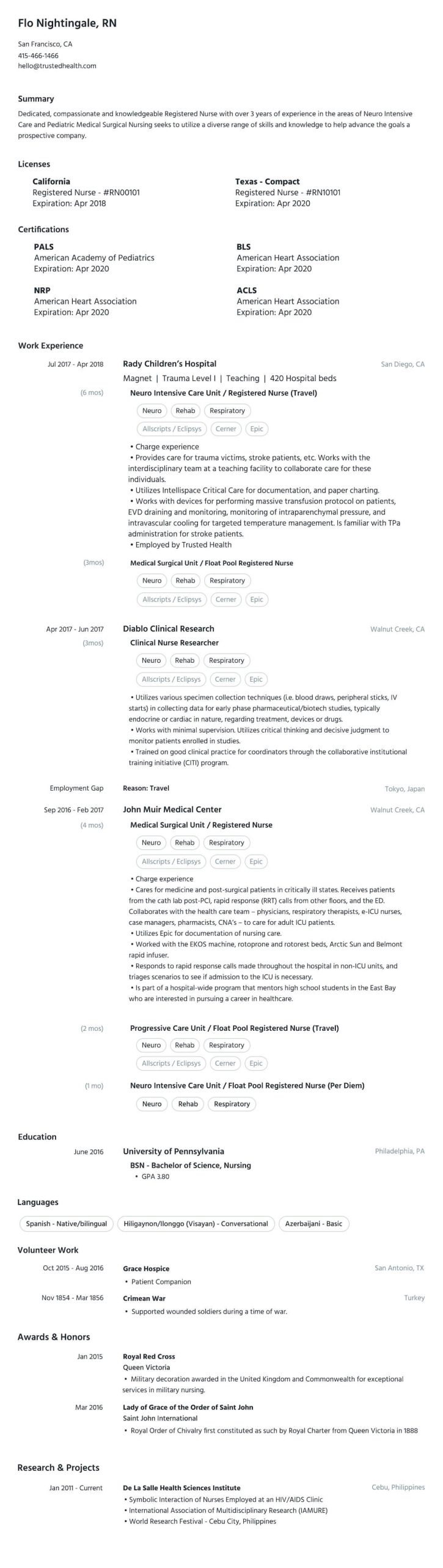 Resume Sample for A Prn Nurse the Travel Nurse Resume – Trusted Health and all other pictures, designs or photos on our website are copyright of their respective owners. we get our pictures from another websites, search engines and other sources to use as an inspiration for you. please contact us if you think we are infringing copyright of your pictures using contact page. we will be very happy to help you.
