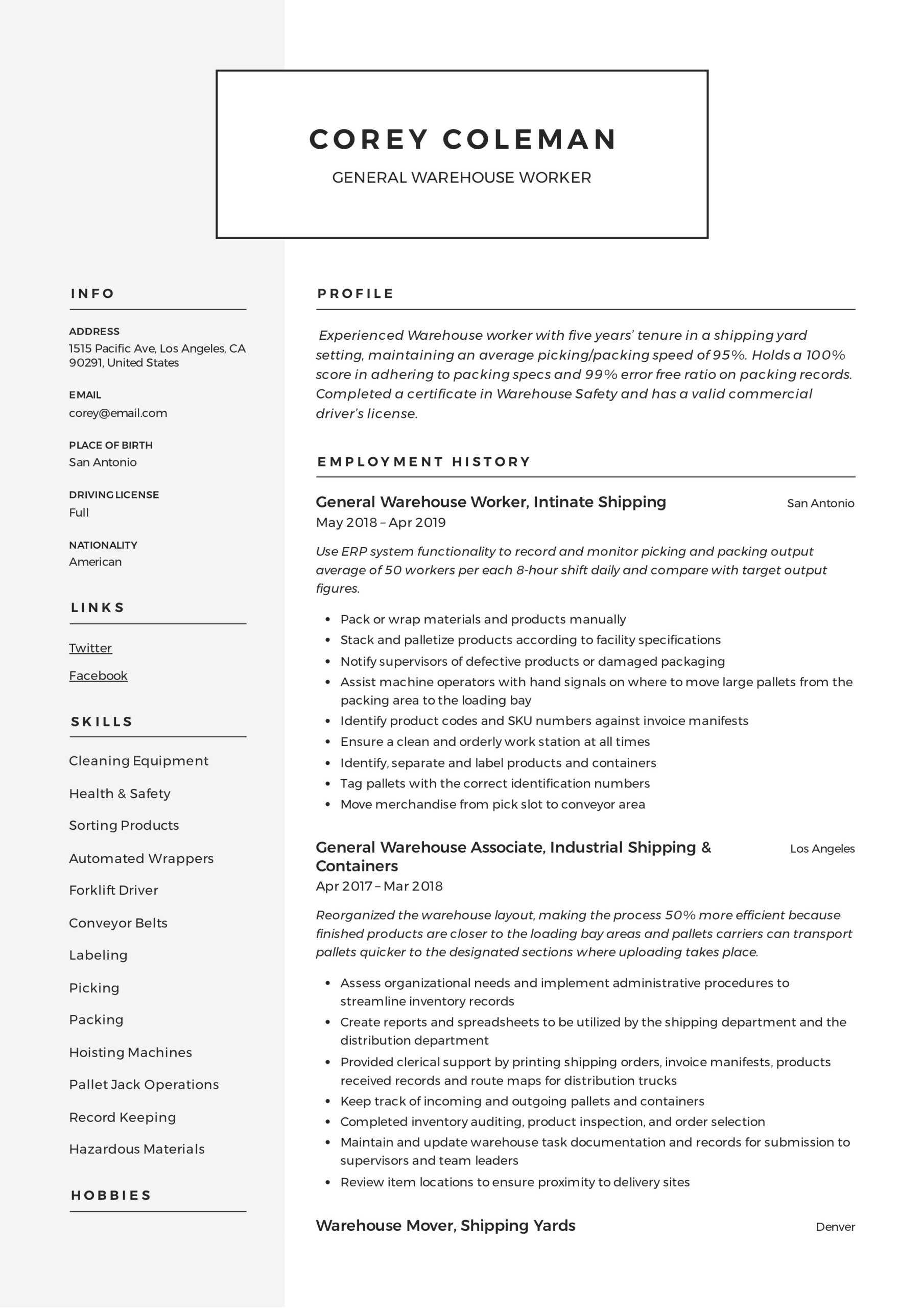 have new images for Resume Sample for A Shipping Clerk Working In A Warehouse General Warehouse Worker Resume Guide 12 Templates 2022? please contact us immediately.
