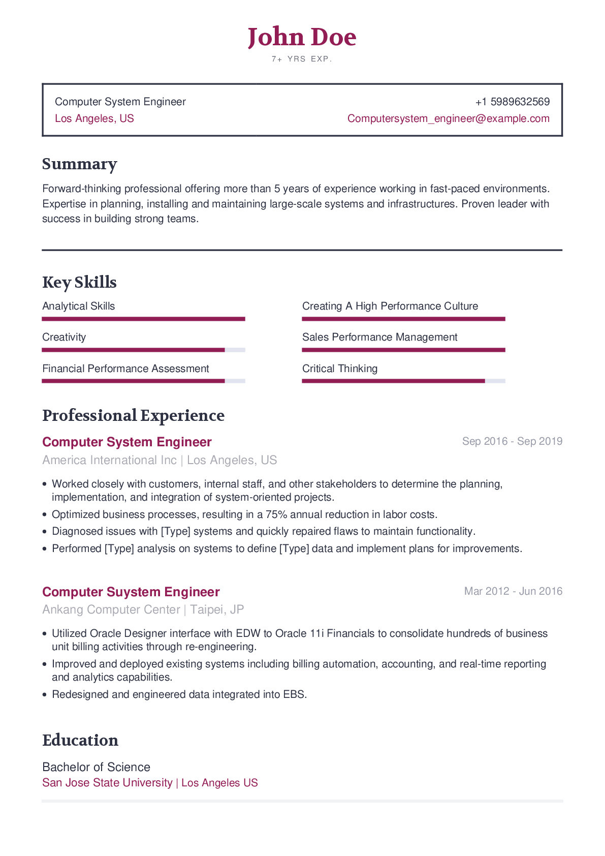Resume Sample for Computer System Engineer Computer System Engineer Resume Example with Content Sample … and all other pictures, designs or photos on our website are copyright of their respective owners. we get our pictures from another websites, search engines and other sources to use as an inspiration for you. please contact us if you think we are infringing copyright of your pictures using contact page. we will be very happy to help you.
