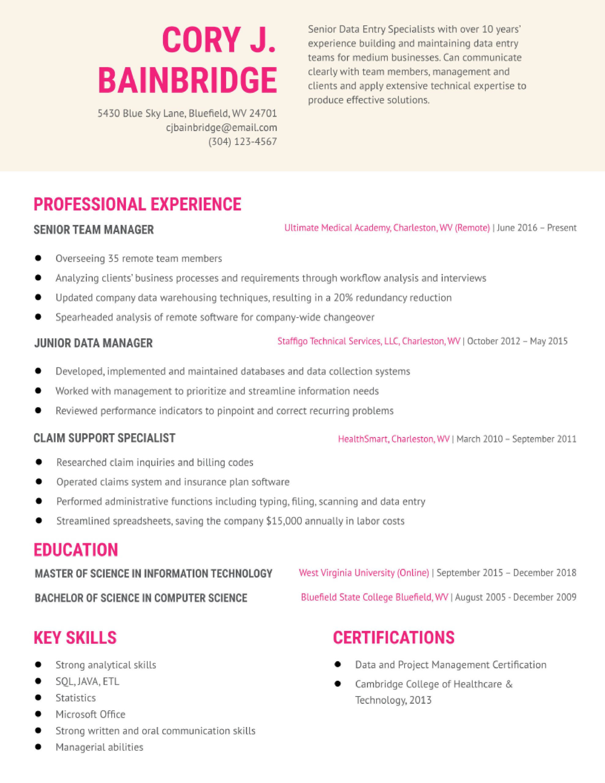 6 photos of the Resume Sample for Data Entry Position