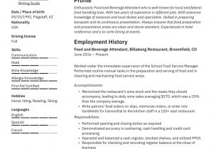 Resume Sample for Food and Beverage Service 22 Food & Beverage attendant Resume Samples Free and all other pictures, designs or photos on our website are copyright of their respective owners. we get our pictures from another websites, search engines and other sources to use as an inspiration for you. please contact us if you think we are infringing copyright of your pictures using contact page. we will be very happy to help you.