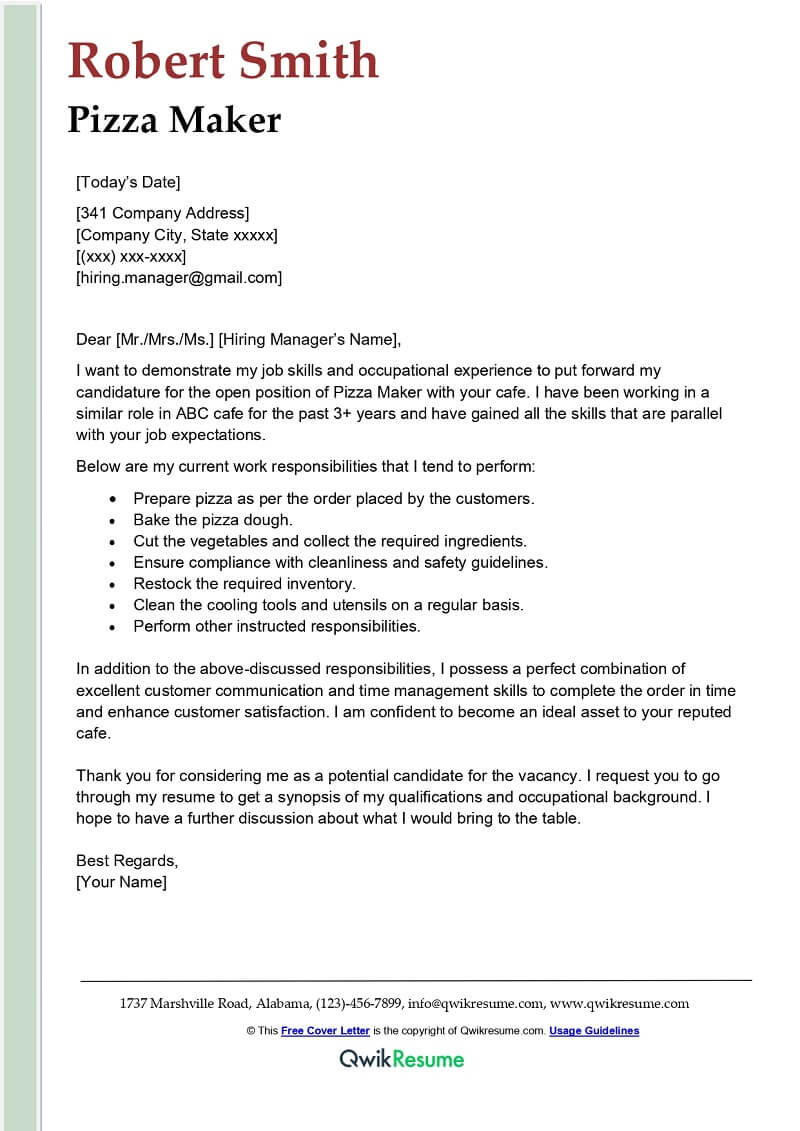 Resume Sample Of A Pizza Maker Pizza Maker Cover Letter Examples – Qwikresume