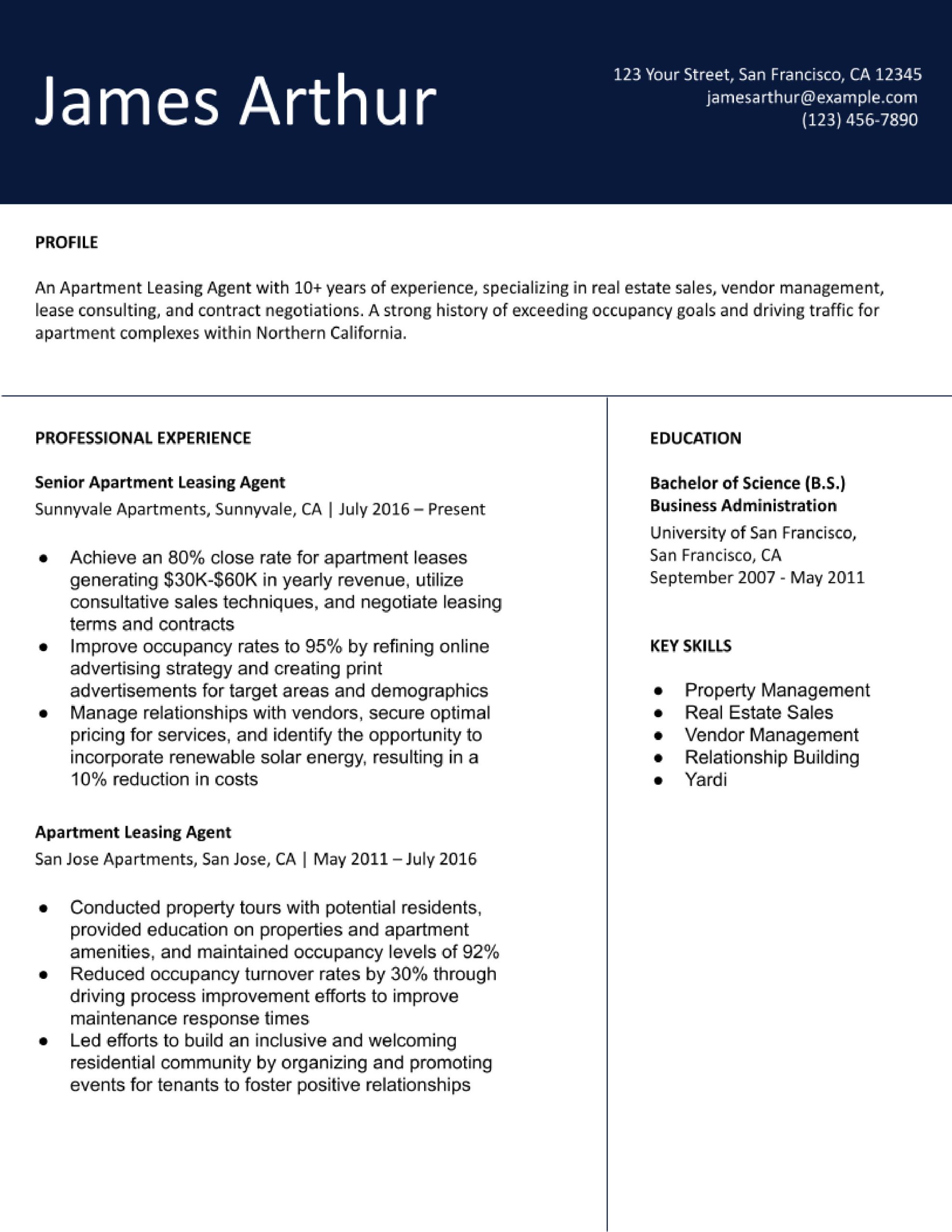 Resume Samples for Apartment Leasing Agent Apartment Leasing Agent Resume Examples In 2022 – Resumebuilder.com and all other pictures, designs or photos on our website are copyright of their respective owners. we get our pictures from another websites, search engines and other sources to use as an inspiration for you. please contact us if you think we are infringing copyright of your pictures using contact page. we will be very happy to help you.