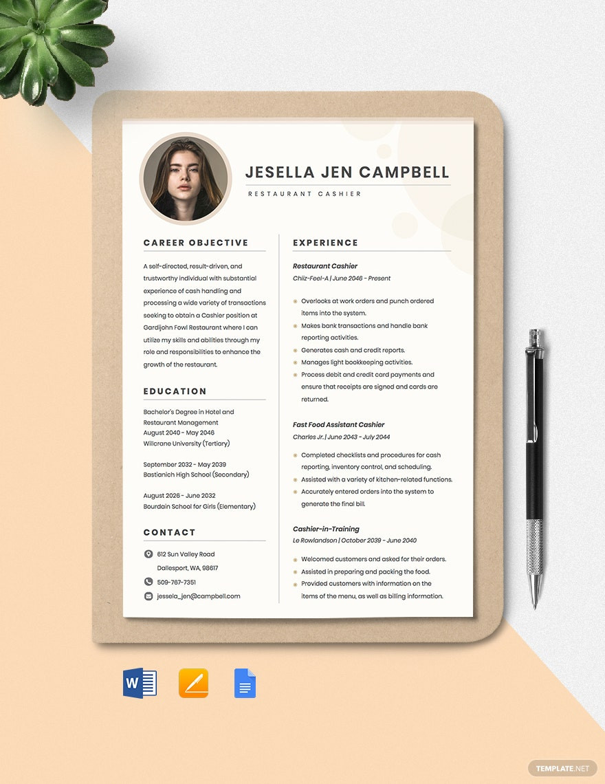 Resume Samples for Cashier at Restaurant Restaurant Cashier Resume Template – Google Docs, Word, Apple … and all other pictures, designs or photos on our website are copyright of their respective owners. we get our pictures from another websites, search engines and other sources to use as an inspiration for you. please contact us if you think we are infringing copyright of your pictures using contact page. we will be very happy to help you.