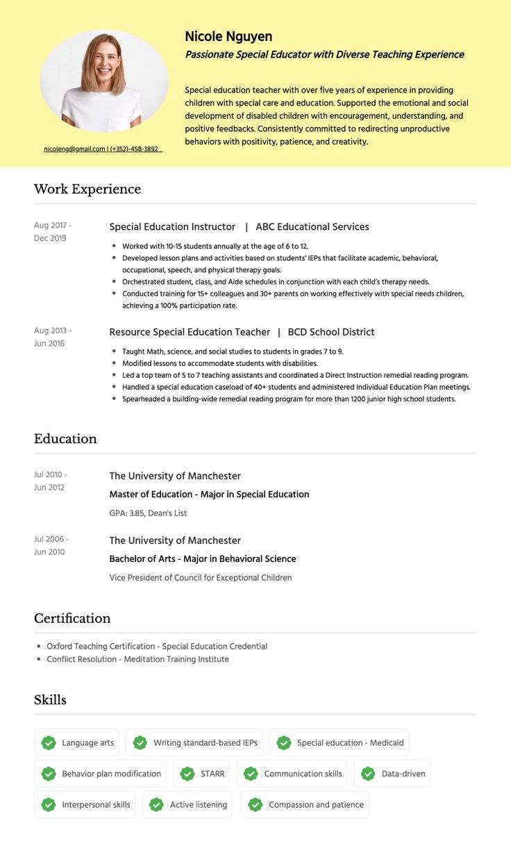 have new images for Resume Samples for Developmental Disability Professional Special Education Teacher Resume: Templates & Examples …? please contact us immediately.