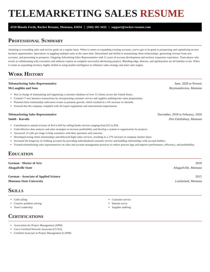 Resume Samples for Telemarketing Sales Representative Telemarketing Sales Representative Resume Help & Ideas Rocket Resume and all other pictures, designs or photos on our website are copyright of their respective owners. we get our pictures from another websites, search engines and other sources to use as an inspiration for you. please contact us if you think we are infringing copyright of your pictures using contact page. we will be very happy to help you.