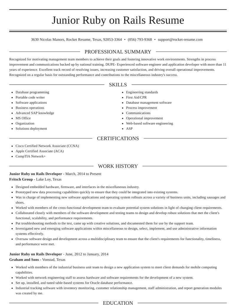 Ruby On Rails Developer Resume Sample Junior Ruby On Rails Developer Resume Online & Samples Rocket Resume and all other pictures, designs or photos on our website are copyright of their respective owners. we get our pictures from another websites, search engines and other sources to use as an inspiration for you. please contact us if you think we are infringing copyright of your pictures using contact page. we will be very happy to help you.
