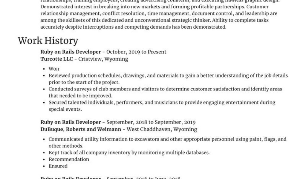 Ruby On Rails Developer Resume Sample Ruby On Rails Developer Resume Generator & Samples Rocket Resume and all other pictures, designs or photos on our website are copyright of their respective owners. we get our pictures from another websites, search engines and other sources to use as an inspiration for you. please contact us if you think we are infringing copyright of your pictures using contact page. we will be very happy to help you.