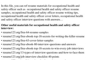 Back To Safety Officer Sample Resume Download Pdf